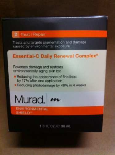 Murad Environmental Shield Essential-C Renewal Complex. 2: Treat/Repair, 1.0 fl oz (30 ml) Reverse damage and restores environmentally aging skin by reducing the appearance of fine lines by 17% after one application and reducing photo damage by 46% in 4 weeks. Scientifically proven Vitamin C innovation combats environmental damage and restores youthful clarity. Patented Skin Repair System rejuventates the appearance of overstressed skin. Vitamin C, Retinol, and Vitamin A work together to fade pigmentation and restore maximum clarity. Retinol Palmitate exfoliates to reveal newer, younger skin. As a leader in research and development, Murad has long been at the forefront of skincare science. Applying insights from my skin research center, dermatology practice and the Murad Medical Spa, we continue this tradition. Ours is an inclusive health philosophy, based on the water principle, a comprehensive inside and out approach to optimal skin health and total wellness. Healthy skin is beautiful skin. My commitment is to provide you with the most advanced formulations and pharmaceutical grade ingredients to restore and strengthen your skin, allowing your healthy radiance to shine through. Scientifically proven. Dermatologist developed and tested. Murad does not test on animals. Made in the USA. Read more